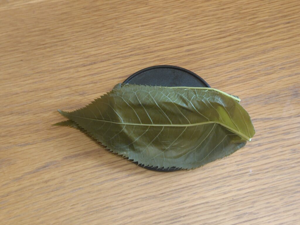 3つ目は、葉っぱを1枚にして。これは、普通の桜餅の感覚。