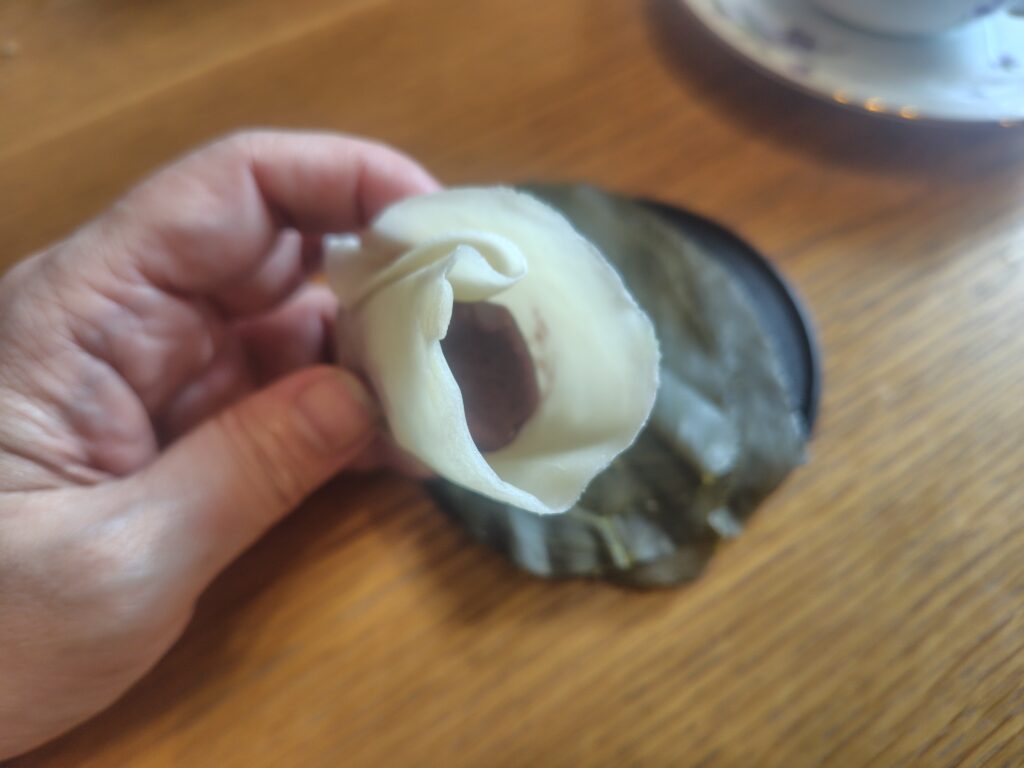 For the third, I kept only one leaf — closer to the “typical” sakuramochi experience.