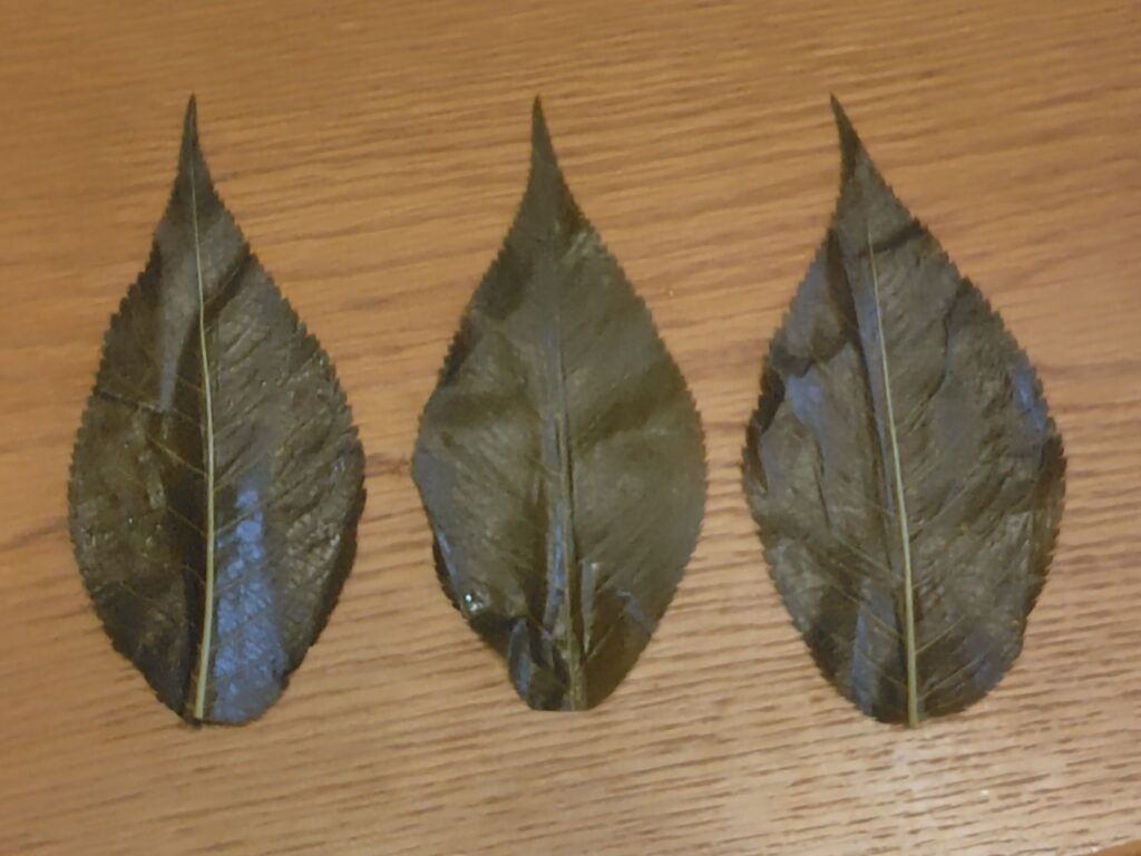 The first thing that catches your eye is the three overlapping cherry leaves.